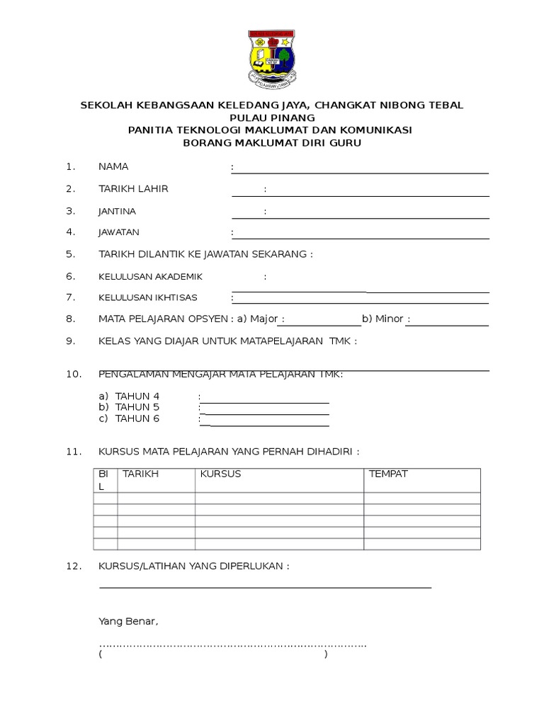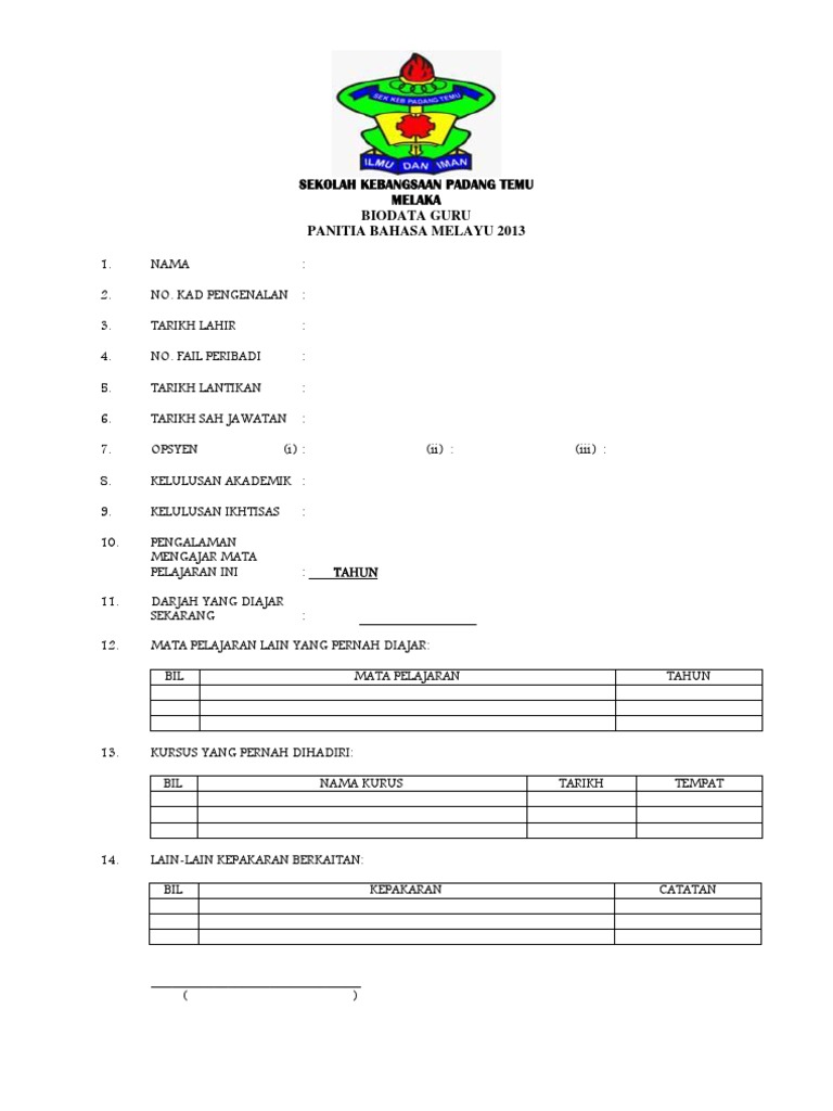 Borang Biodata Guru Untuk Fail Panitia Pdf